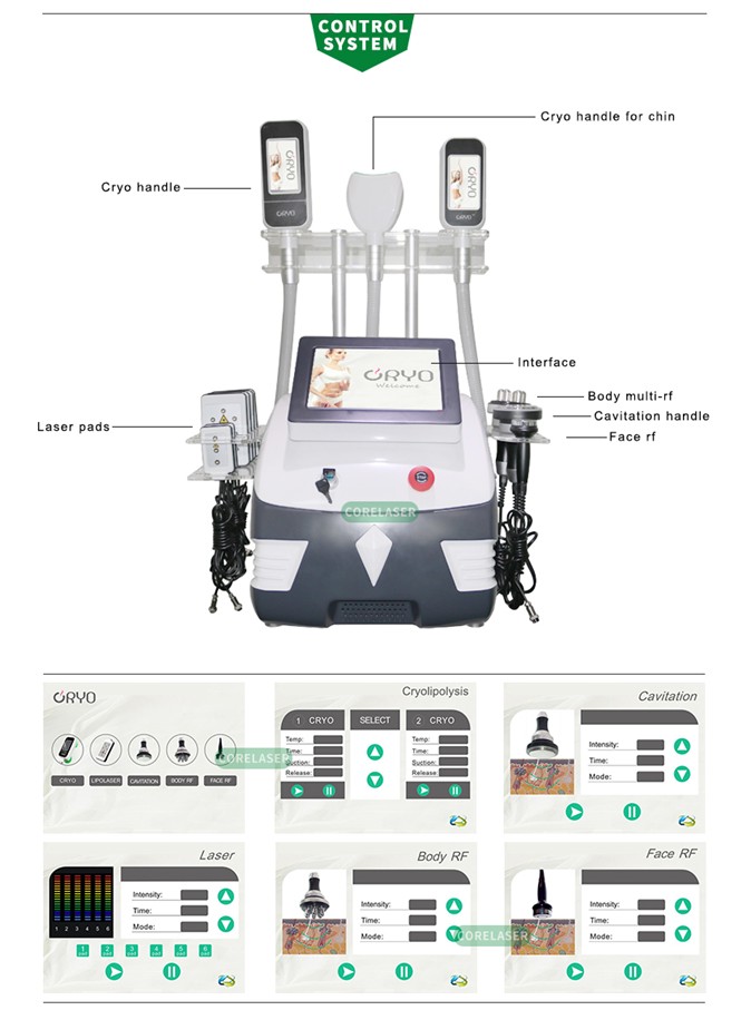 + LIPOLASER + KAVITACIJA 40K + RADIOFREKVENCIJA ZA TIJELO + RF za LICE – najnovija tehnologija 100% učinkovita metoda kriolipolize aplikator pokriva 360°cijelo područje koje se tretira