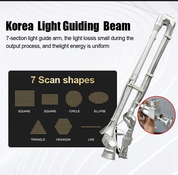 Valna duljina CO2 lasera je 10,6 μm, što omogućuje potpunu apsorpciju u ljudskom biološkom tkivu (prikladno za sve tipove kože). Zatvoreni frakcijski CO2 laser prenosi izlaznu svjetlost putem zglobne ruke, što osigurava preciznije usmjeravanje i veću gustoću energije.